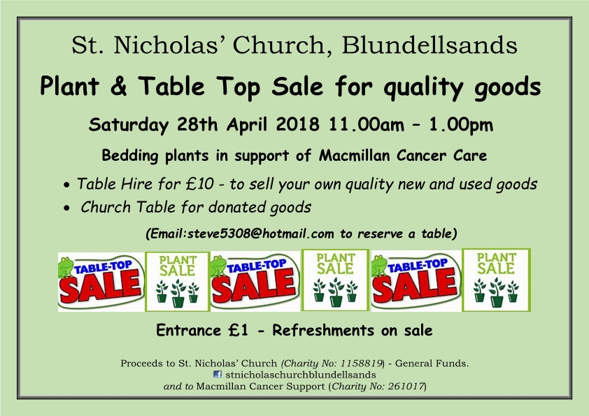 2018 – Poster Plant Sale & Table Top Sale – quality goods Published March 4, 2018 at 842 × 595 in Calendar of Upcoming Special Services and Social Events